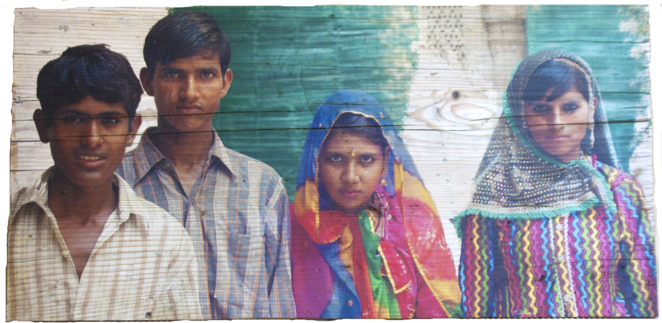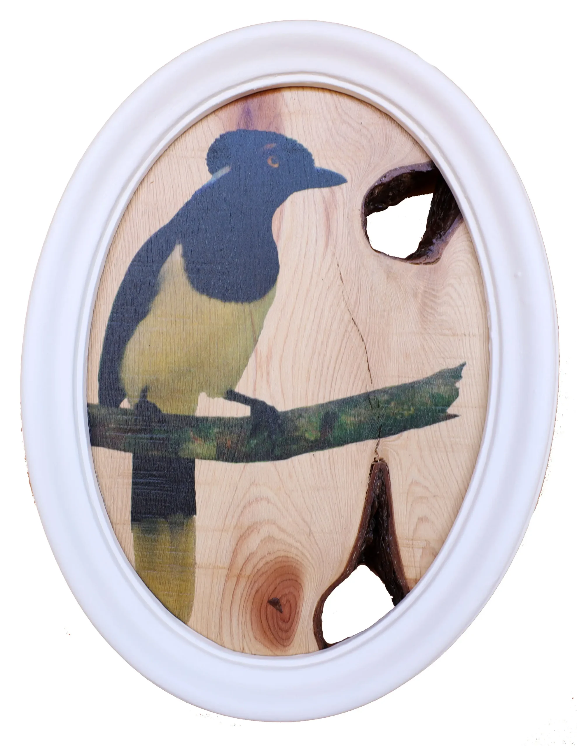 Impresión con tintas UVI sobre madera de pino, pequeñas intervenciones acrílicas.